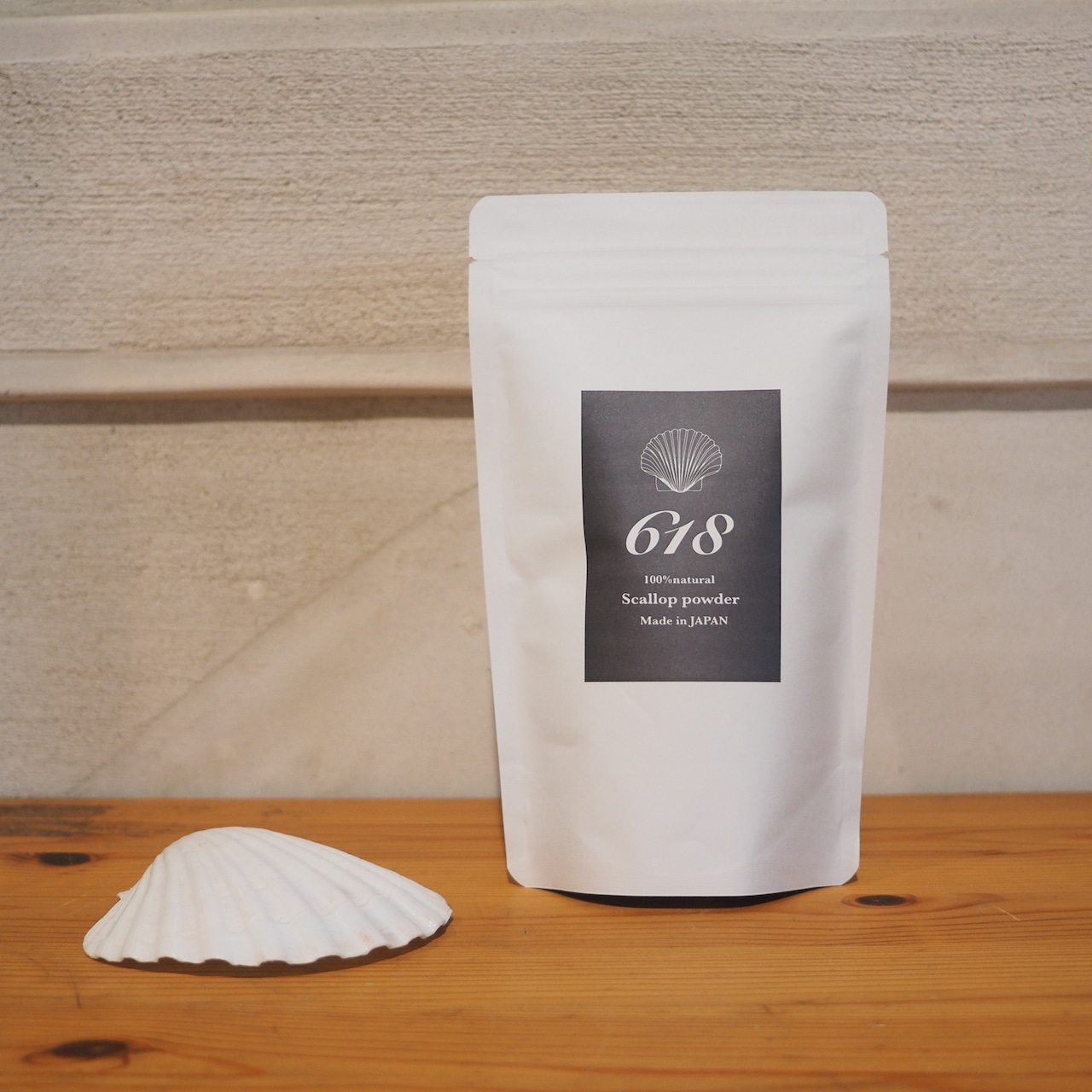 618ホタテパウダーは放射線試験をクリアしたホタテの貝殻を3年以上天日干しをし、食品製造業許可取得工場で高温で加工した小麦粉のようなパウダーです。この製品は水に溶かして使います。洗浄・除菌・消臭効果があります。